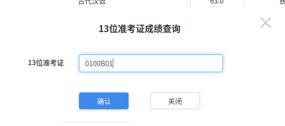 點擊“13 位準(zhǔn)考證查詢”,輸入13 位準(zhǔn)考證號,可以查詢13位準(zhǔn)考證號下成績。