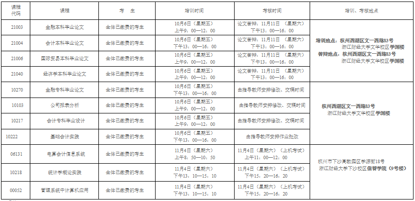 浙江財經(jīng)大學(xué)2023年(下)高教自考實踐性環(huán)節(jié)培訓(xùn)、考核安排