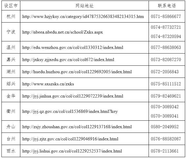 七、各設(shè)區(qū)市教育考試機(jī)構(gòu)網(wǎng)站地址及聯(lián)系電話