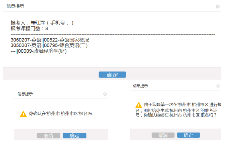 8、勾選或添加完成后點(diǎn)擊頁面下方“確認(rèn)報(bào)名”,系統(tǒng)做出信息提示。