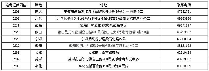 寧波市相應(yīng)區(qū)(縣、市)考試中心(自考辦)