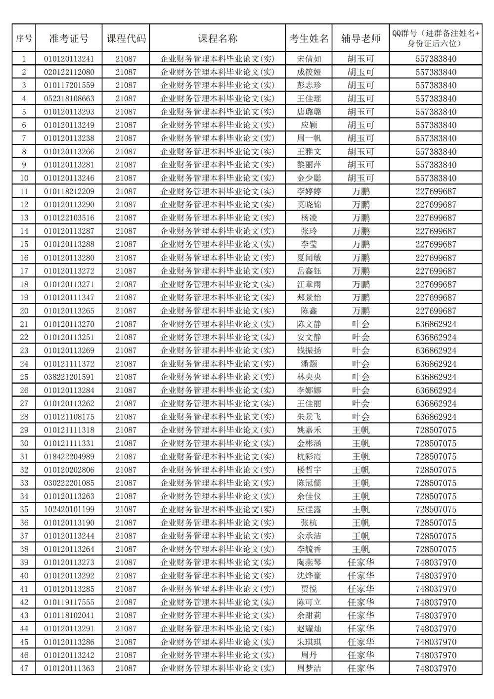 浙江工商大學(xué)2022年(下)自考畢業(yè)論文指導(dǎo)教師安排(企業(yè)財務(wù)管理)