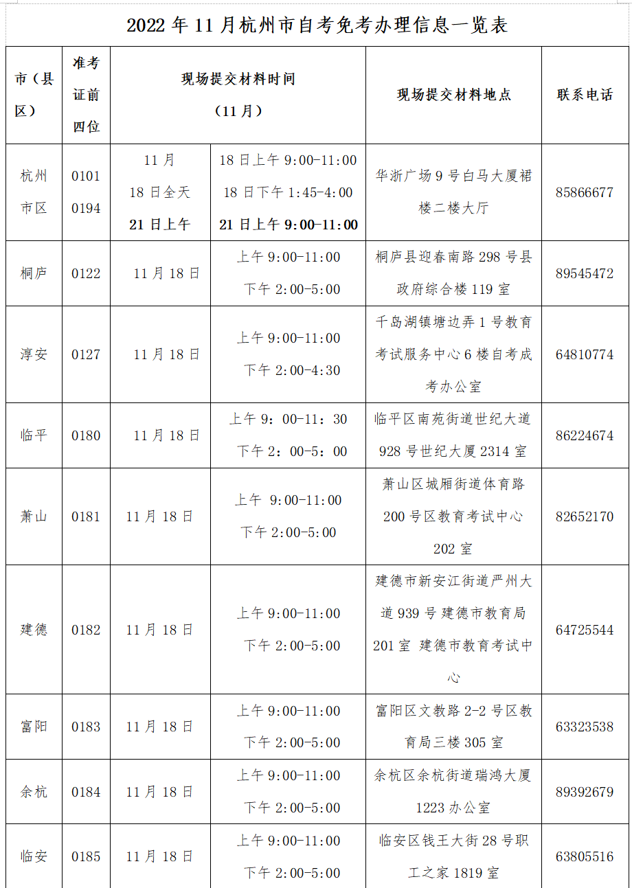 [浙江]杭州市2022年11月全國高等教育自學(xué)考試免考辦理通知