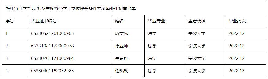寧波大學(xué)2022年度自學(xué)考試本科畢業(yè)生申辦學(xué)位名單通知