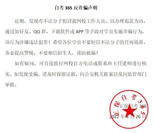 以下為自考365官方發(fā)布的聲明內(nèi)容: